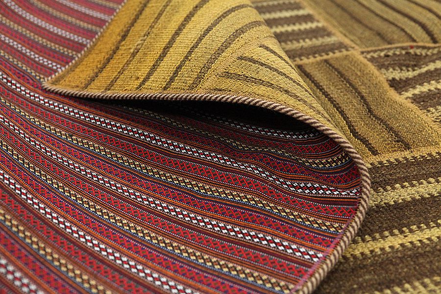 : This is a particular type of Oriental flat woven rug without a pile (which preceded the pile carpet) and is manufactured mainly by nomads in Persia, Afghanistan, Turkey and in various regions of the Caucasus. These textiles are rather small with a plain weave and no pile and they have got geometric patterns and rich colors. In order to weave them, natural materials like wool are used and sometimes silk for lightweight and delicate carpets. The coloring of yarns is done with plants and minerals that contribute to natural, beautiful colors. The long history of Kilim rugs goes back centuries to the nomads of Central Asia. Initially the carpets were mainly used in households and much later became commercial products, following the bloom of the oriental carpeting during the 16th and 17th century. They have many applications and can be used on the floor, as toppings or for decorating walls. The name Kilim is derived from the Persian word gelim. The most famous Persian carpets are Sumakh, Senneh, Fars and Qashqai. Many Kilims are also woven at the border between Persia and Afghanistan by the nomads of Balouch with dark earthy indicative colors.