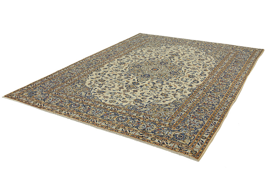 Kashan Carpets : Between Isfahan and Tehran, near the Dast-e-Kavir desert is the city of Kashan. The city is known for its handmade carpets, textiles and ceramics. The city where many commercial transactions take place is important as it is a resting place along the Silk Road. The famous Ardebil carpet that is found in the Victoria and Albert Museum is thought to have been woven in Kashan in the 16th century. Since 1800 began the organized production of handmade carpets from very renowned weavers in Kashan. The Kashan rugs gained a solid reputation and their success is due to three factors: the great variety of beautiful designs with fine colors, the soft shiny wool that gives a smooth surface to the carpets and the fact that many weavers come from nearby Isfahan who are capable and renowned carpet artisans.