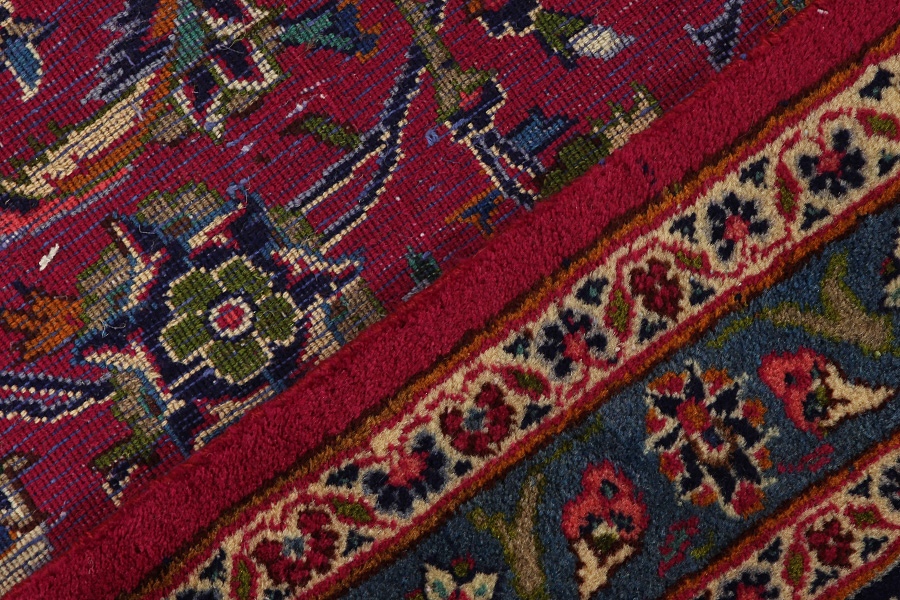 Abrash: Due to the different amount of grease in the wool and the added salt during the process of dyeing, the wool has got a varying colour absorbance. This is not very visible before weaving. During the weaving though, lines of the same colour are formed in the carpet. This is called Abrash (which in Farsi means little cloud) and it shows that the wool was not manufactured using chemical means and marks the naturalness and authenticity of the carpets. Examples