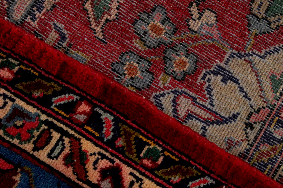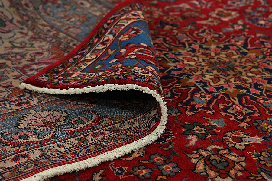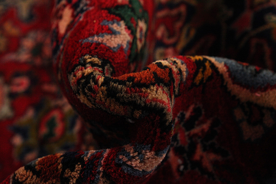 Abrash: Due to the different amount of grease in the wool and the added salt during the process of dyeing, the wool has got a varying colour absorbance. This is not very visible before weaving. During the weaving though, lines of the same colour are formed in the carpet. This is called Abrash (which in Farsi means little cloud) and it shows that the wool was not manufactured using chemical means and marks the naturalness and authenticity of the carpets. Examples