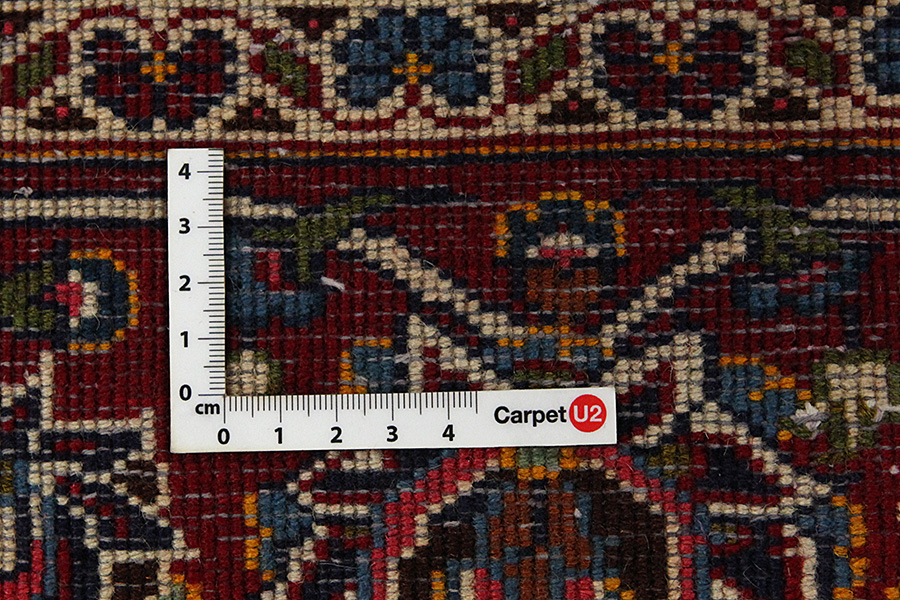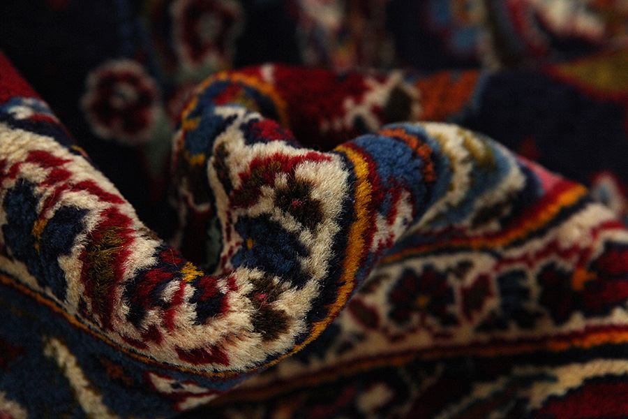 Abrash: Due to the different amount of grease in the wool and the added salt during the process of dyeing, the wool has got a varying colour absorbance. This is not very visible before weaving. During the weaving though, lines of the same colour are formed in the carpet. This is called Abrash (which in Farsi means little cloud) and it shows that the wool was not manufactured using chemical means and marks the naturalness and authenticity of the carpets. Examples