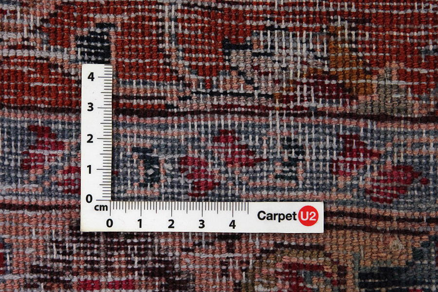 Abrash: Due to the different amount of grease in the wool and the added salt during the process of dyeing, the wool has got a varying colour absorbance. This is not very visible before weaving. During the weaving though, lines of the same colour are formed in the carpet. This is called Abrash (which in Farsi means little cloud) and it shows that the wool was not manufactured using chemical means and marks the naturalness and authenticity of the carpets. Examples