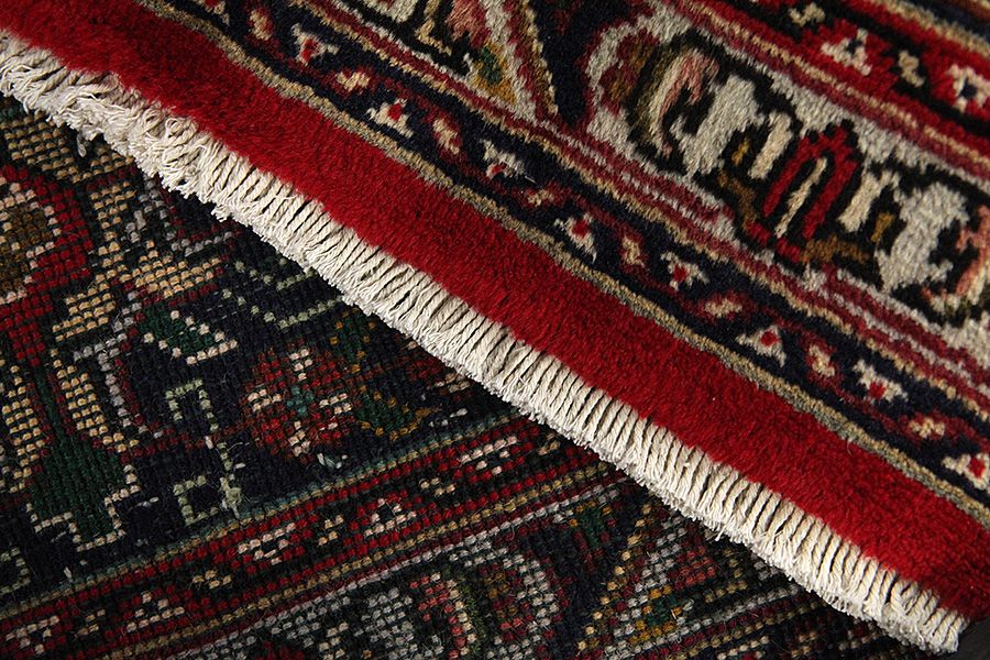 Abrash: Due to the different amount of grease in the wool and the added salt during the process of dyeing, the wool has got a varying colour absorbance. This is not very visible before weaving. During the weaving though, lines of the same colour are formed in the carpet. This is called Abrash (which in Farsi means little cloud) and it shows that the wool was not manufactured using chemical means and marks the naturalness and authenticity of the carpets. Examples