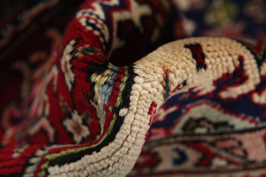 Abrash: Due to the different amount of grease in the wool and the added salt during the process of dyeing, the wool has got a varying colour absorbance. This is not very visible before weaving. During the weaving though, lines of the same colour are formed in the carpet. This is called Abrash (which in Farsi means little cloud) and it shows that the wool was not manufactured using chemical means and marks the naturalness and authenticity of the carpets. Examples