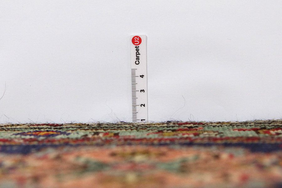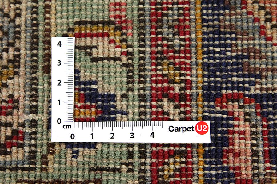 Abrash: Due to the different amount of grease in the wool and the added salt during the process of dyeing, the wool has got a varying colour absorbance. This is not very visible before weaving. During the weaving though, lines of the same colour are formed in the carpet. This is called Abrash (which in Farsi means little cloud) and it shows that the wool was not manufactured using chemical means and marks the naturalness and authenticity of the carpets. Examples