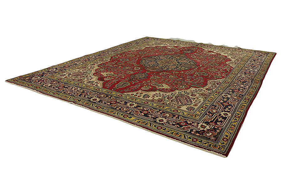 Tabriz Carpets : The city of Tabriz is the capital of Azerbaijan province in Northwestern Iran. Until the end of the caravans era it was the most important centre for trade and carpet weaving. Tabriz supplied the West with masterpieces that were made by renowned and very capable weavers. Their high quality of Tabriz carpets made them renowned in world markets. Many workshops where created where hand-woven carpets with very high density knots and high quality materials where woven. Silk and fine quality wool establish these carpets as very high class. No other city in Persia produced such large quantity or variety of carpets. With or without a medallion, their designs are full of imagination and individuality. Flowers, scenes, stanzas of poems often decorate them. Their predominant colors are beige, blue and red.