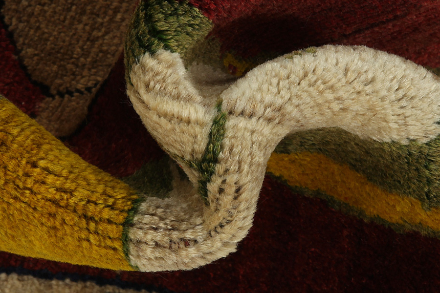 Abrash: Due to the different amount of grease in the wool and the added salt during the process of dyeing, the wool has got a varying colour absorbance. This is not very visible before weaving. During the weaving though, lines of the same colour are formed in the carpet. This is called Abrash (which in Farsi means little cloud) and it shows that the wool was not manufactured using chemical means and marks the naturalness and authenticity of the carpets. Examples