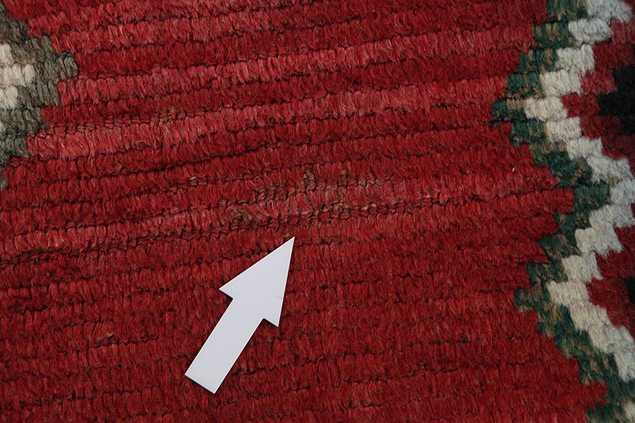 Abrash: Due to the different amount of grease in the wool and the added salt during the process of dyeing, the wool has got a varying colour absorbance. This is not very visible before weaving. During the weaving though, lines of the same colour are formed in the carpet. This is called Abrash (which in Farsi means little cloud) and it shows that the wool was not manufactured using chemical means and marks the naturalness and authenticity of the carpets. Examples