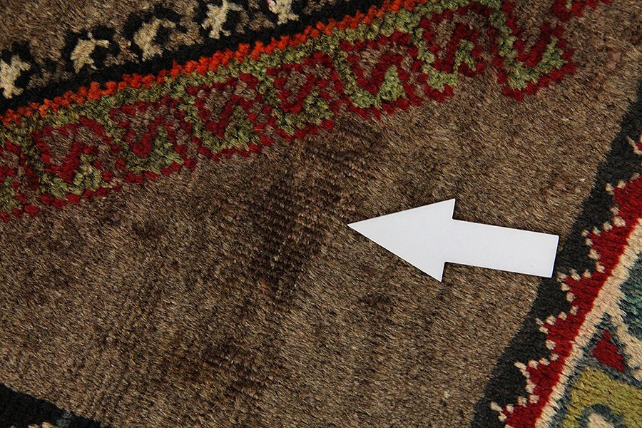Abrash: Due to the different amount of grease in the wool and the added salt during the process of dyeing, the wool has got a varying colour absorbance. This is not very visible before weaving. During the weaving though, lines of the same colour are formed in the carpet. This is called Abrash (which in Farsi means little cloud) and it shows that the wool was not manufactured using chemical means and marks the naturalness and authenticity of the carpets. Examples