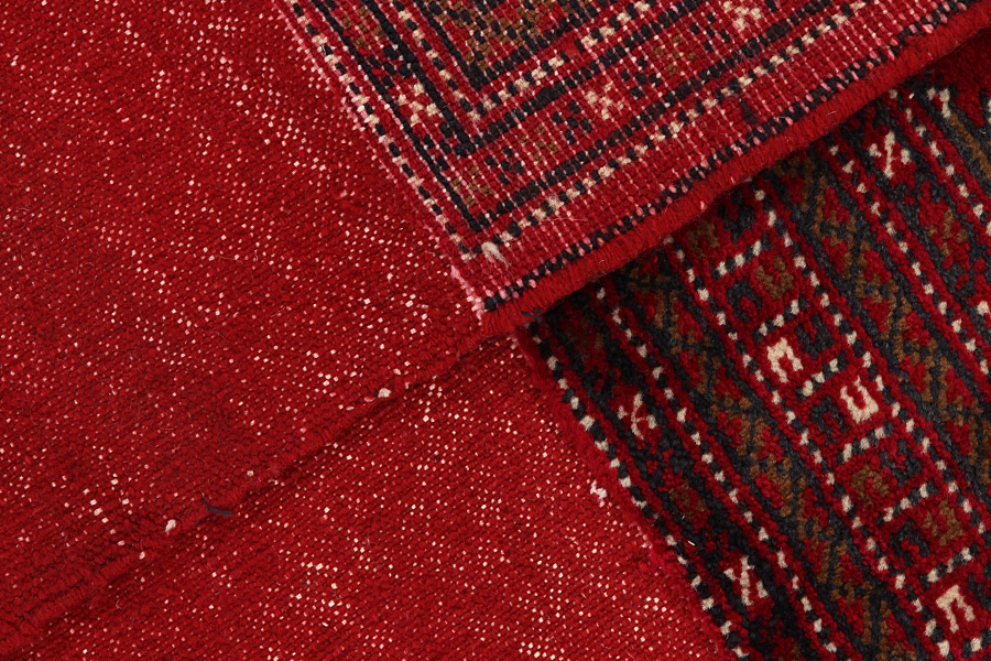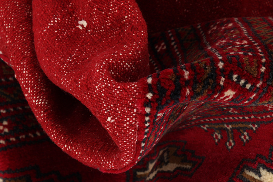 Bokhara Carpets : The Bokhara carpets are woven in Belutchistan and in different regions of Uzbekistan, Turkmenistan and Afghanistan. Turkmen carpets include Basjir, Salor, Tekke-Bochara, Jolam-Bocharaband, Ersari, Tjaudor and Yomut which are examples of the carpet style called Bokhara. Some areas of Turkmenistan where carpets are woven are Ashkabad, Bakharden, Geok-Tepe, Kizyl-Arvat and Merv. The deep red and the whole range of red from purple to brown are the dominant colors with repeating octagons, rhombi, yomut motifs being characteristic of these carpets. The warp of the carpets is always wool.