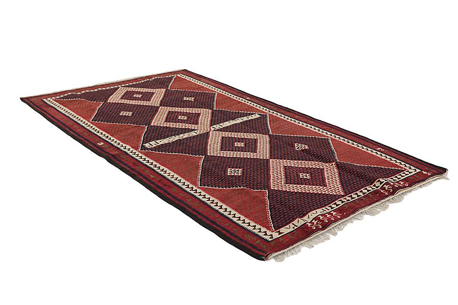 : This is a particular type of Oriental flat woven rug without a pile (which preceded the pile carpet) and is manufactured mainly by nomads in Persia, Afghanistan, Turkey and in various regions of the Caucasus. These textiles are rather small with a plain weave and no pile and they have got geometric patterns and rich colors. In order to weave them, natural materials like wool are used and sometimes silk for lightweight and delicate carpets. The coloring of yarns is done with plants and minerals that contribute to natural, beautiful colors. The long history of Kilim rugs goes back centuries to the nomads of Central Asia. Initially the carpets were mainly used in households and much later became commercial products, following the bloom of the oriental carpeting during the 16th and 17th century. They have many applications and can be used on the floor, as toppings or for decorating walls. The name Kilim is derived from the Persian word gelim. The most famous Persian carpets are Sumakh, Senneh, Fars and Qashqai. Many Kilims are also woven at the border between Persia and Afghanistan by the nomads of Balouch with dark earthy indicative colors.