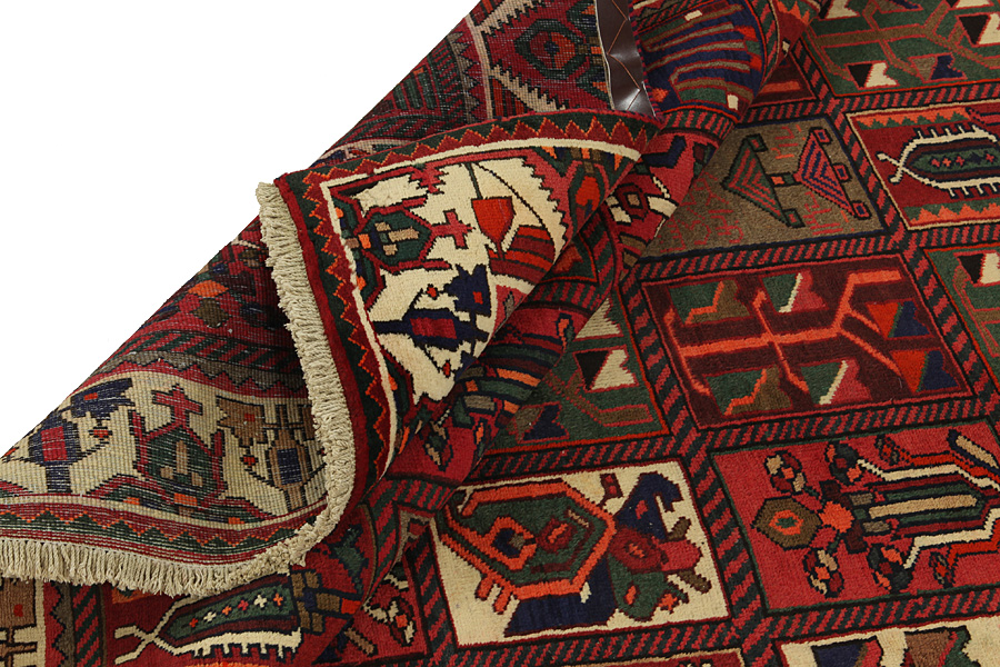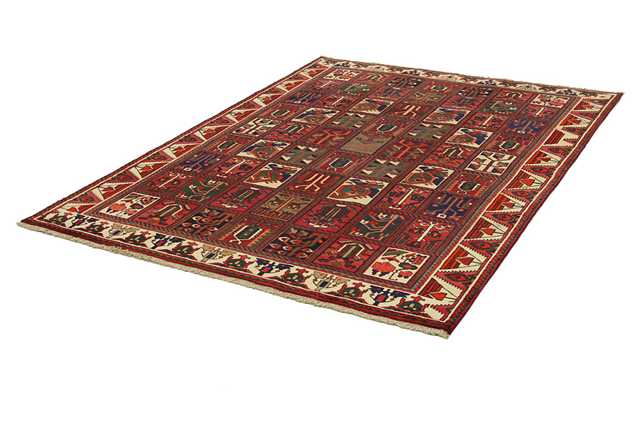 Bakhtiari Carpets : In the mountains Zagros, west of the city of Isfahan, around the town of Shahr-e-Kurd, live the nomads Bakhtiar. Their carpets are known for the design with various repeating squares in which flowers and animals are depicted. For this reason the design is called "garden"(Khesti). Their carpets are very durable with a dense weave and very good quality Persian wool coming from sheep grazing at a high altitude. The best Bakhtiar rugs and carpets with highest knot density are often called Bibibaff. Also in many designs we see influences from Isfahan carpets. (Boldaji - Feridan - Saman).