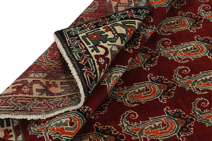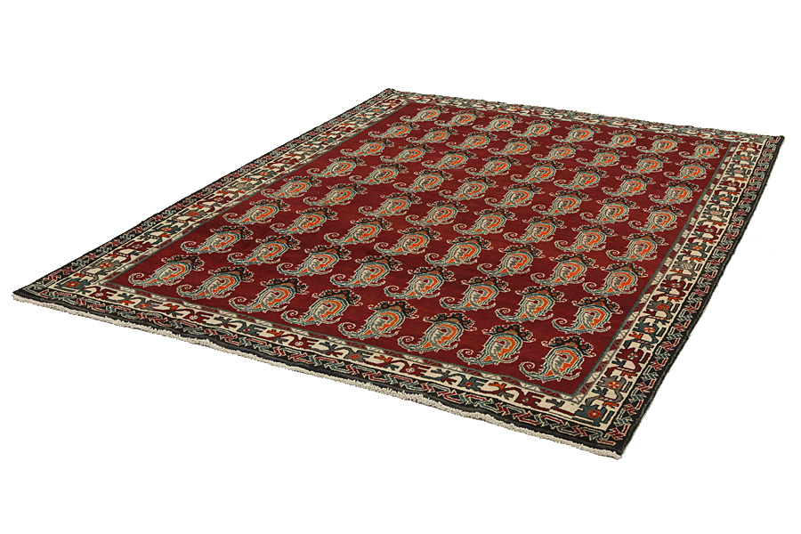 Qashqai Carpets : Qashqai carpets are woven by nomads who live in the mountainous areas of Southwest Persia, the provinces of Fars, Khuzestan, south of Isfahan and around the city Shiraz. Their carpets have a high knot density and a wide variety of designs, usually in deep red and blue colors. They weave carpets, Kilims and decorative textiles (ribbons, bags, etc.), which depict scenes from their lives with various representation of humans, animals, birds, trees and flowers. They also depict historical monuments, mostly from Persepolis.
