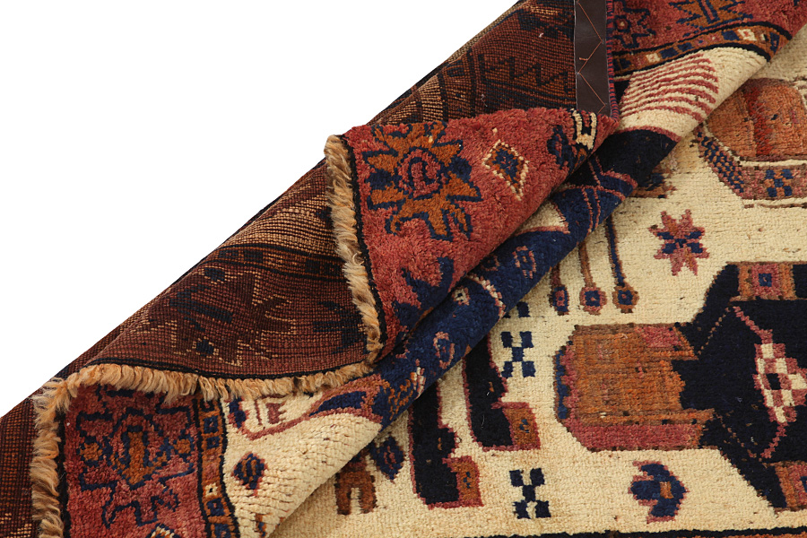 Qashqai Carpets : Qashqai carpets are woven by nomads who live in the mountainous areas of Southwest Persia, the provinces of Fars, Khuzestan, south of Isfahan and around the city Shiraz. Their carpets have a high knot density and a wide variety of designs, usually in deep red and blue colors. They weave carpets, Kilims and decorative textiles (ribbons, bags, etc.), which depict scenes from their lives with various representation of humans, animals, birds, trees and flowers. They also depict historical monuments, mostly from Persepolis.