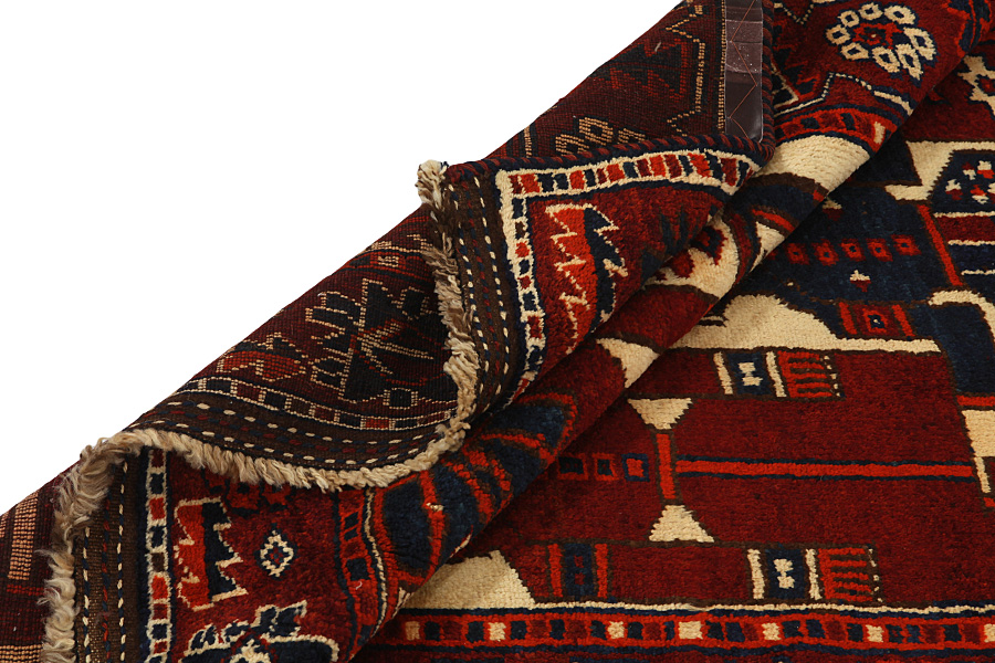 Qashqai Carpets : Qashqai carpets are woven by nomads who live in the mountainous areas of Southwest Persia, the provinces of Fars, Khuzestan, south of Isfahan and around the city Shiraz. Their carpets have a high knot density and a wide variety of designs, usually in deep red and blue colors. They weave carpets, Kilims and decorative textiles (ribbons, bags, etc.), which depict scenes from their lives with various representation of humans, animals, birds, trees and flowers. They also depict historical monuments, mostly from Persepolis.