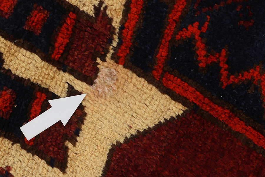 Abrash: Due to the different amount of grease in the wool and the added salt during the process of dyeing, the wool has got a varying colour absorbance. This is not very visible before weaving. During the weaving though, lines of the same colour are formed in the carpet. This is called Abrash (which in Farsi means little cloud) and it shows that the wool was not manufactured using chemical means and marks the naturalness and authenticity of the carpets. Examples