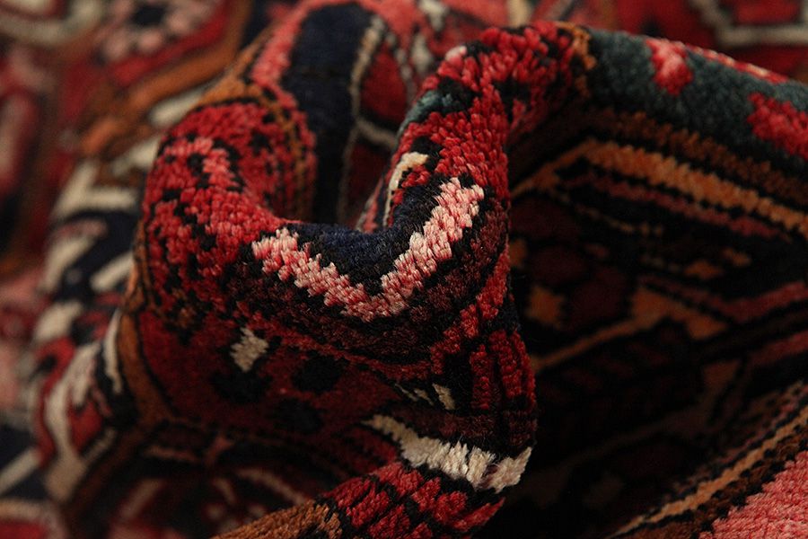 Abrash: Due to the different amount of grease in the wool and the added salt during the process of dyeing, the wool has got a varying colour absorbance. This is not very visible before weaving. During the weaving though, lines of the same colour are formed in the carpet. This is called Abrash (which in Farsi means little cloud) and it shows that the wool was not manufactured using chemical means and marks the naturalness and authenticity of the carpets. Examples