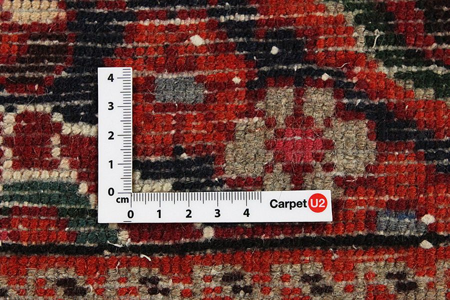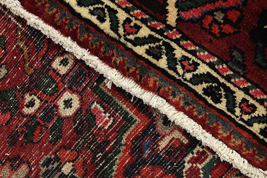 Abrash: Due to the different amount of grease in the wool and the added salt during the process of dyeing, the wool has got a varying colour absorbance. This is not very visible before weaving. During the weaving though, lines of the same colour are formed in the carpet. This is called Abrash (which in Farsi means little cloud) and it shows that the wool was not manufactured using chemical means and marks the naturalness and authenticity of the carpets. Examples