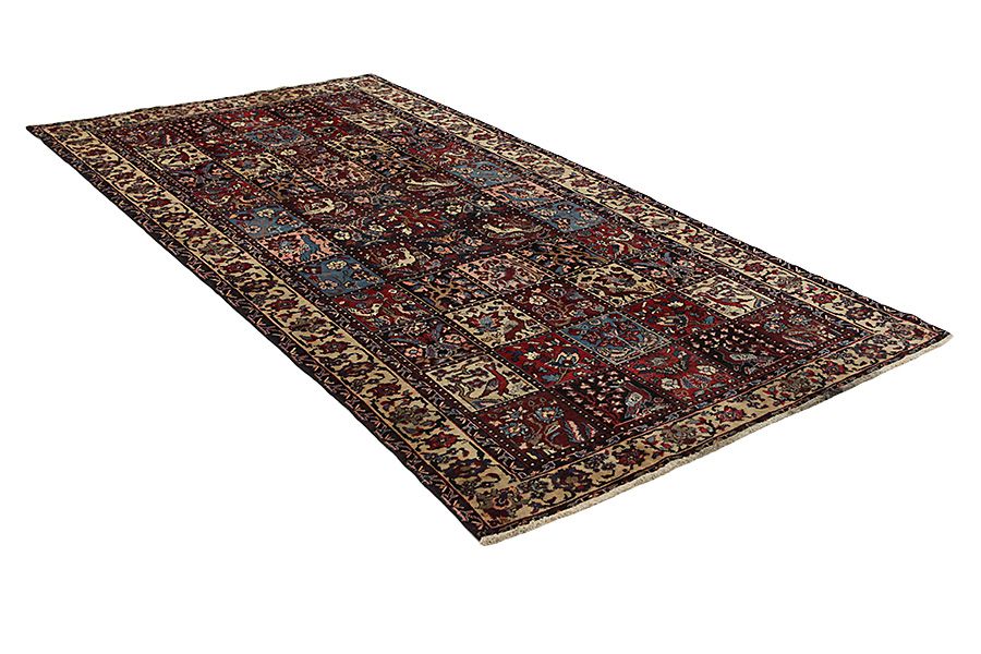 Bakhtiari Carpets : In the mountains Zagros, west of the city of Isfahan, around the town of Shahr-e-Kurd, live the nomads Bakhtiar. Their carpets are known for the design with various repeating squares in which flowers and animals are depicted. For this reason the design is called "garden"(Khesti). Their carpets are very durable with a dense weave and very good quality Persian wool coming from sheep grazing at a high altitude. The best Bakhtiar rugs and carpets with highest knot density are often called Bibibaff. Also in many designs we see influences from Isfahan carpets. (Boldaji - Feridan - Saman).