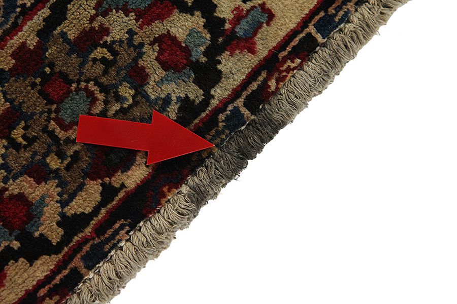 Abrash: Due to the different amount of grease in the wool and the added salt during the process of dyeing, the wool has got a varying colour absorbance. This is not very visible before weaving. During the weaving though, lines of the same colour are formed in the carpet. This is called Abrash (which in Farsi means little cloud) and it shows that the wool was not manufactured using chemical means and marks the naturalness and authenticity of the carpets. Examples