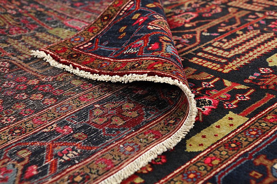Abrash: Due to the different amount of grease in the wool and the added salt during the process of dyeing, the wool has got a varying colour absorbance. This is not very visible before weaving. During the weaving though, lines of the same colour are formed in the carpet. This is called Abrash (which in Farsi means little cloud) and it shows that the wool was not manufactured using chemical means and marks the naturalness and authenticity of the carpets. Examples