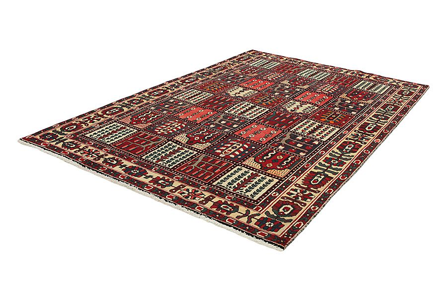 Bakhtiari Carpets : In the mountains Zagros, west of the city of Isfahan, around the town of Shahr-e-Kurd, live the nomads Bakhtiar. Their carpets are known for the design with various repeating squares in which flowers and animals are depicted. For this reason the design is called "garden"(Khesti). Their carpets are very durable with a dense weave and very good quality Persian wool coming from sheep grazing at a high altitude. The best Bakhtiar rugs and carpets with highest knot density are often called Bibibaff. Also in many designs we see influences from Isfahan carpets. (Boldaji - Feridan - Saman).