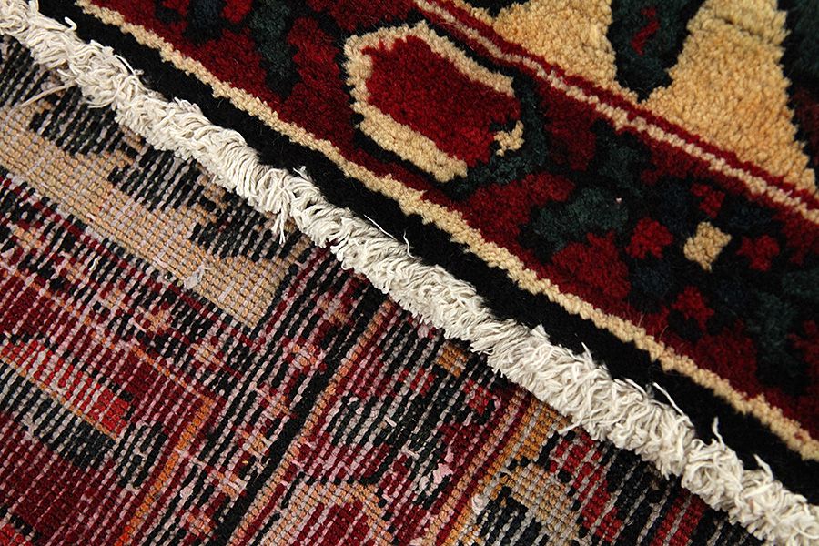 Abrash: Due to the different amount of grease in the wool and the added salt during the process of dyeing, the wool has got a varying colour absorbance. This is not very visible before weaving. During the weaving though, lines of the same colour are formed in the carpet. This is called Abrash (which in Farsi means little cloud) and it shows that the wool was not manufactured using chemical means and marks the naturalness and authenticity of the carpets. Examples