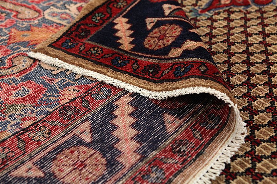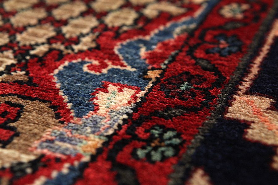 Abrash: Due to the different amount of grease in the wool and the added salt during the process of dyeing, the wool has got a varying colour absorbance. This is not very visible before weaving. During the weaving though, lines of the same colour are formed in the carpet. This is called Abrash (which in Farsi means little cloud) and it shows that the wool was not manufactured using chemical means and marks the naturalness and authenticity of the carpets. Examples