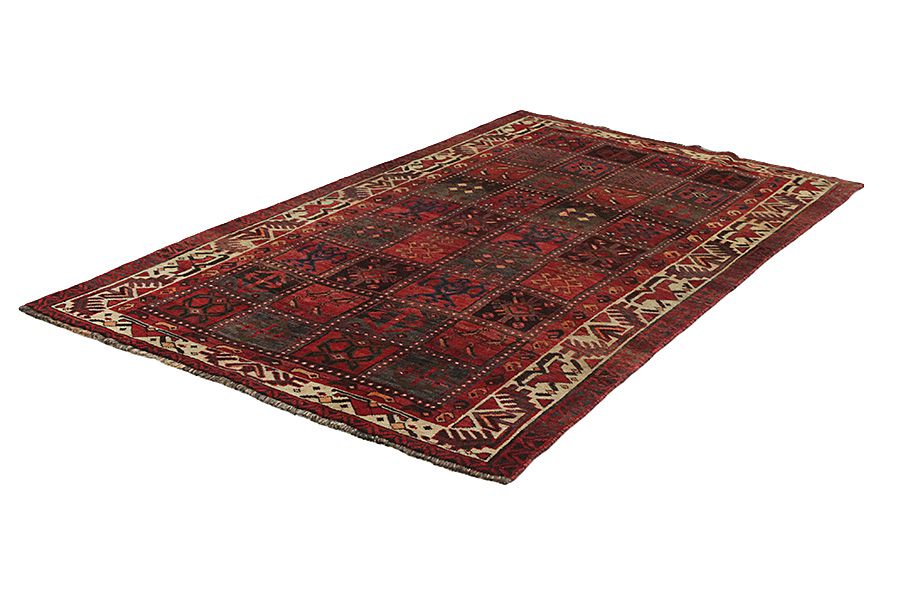 Bakhtiari Carpets : In the mountains Zagros, west of the city of Isfahan, around the town of Shahr-e-Kurd, live the nomads Bakhtiar. Their carpets are known for the design with various repeating squares in which flowers and animals are depicted. For this reason the design is called "garden"(Khesti). Their carpets are very durable with a dense weave and very good quality Persian wool coming from sheep grazing at a high altitude. The best Bakhtiar rugs and carpets with highest knot density are often called Bibibaff. Also in many designs we see influences from Isfahan carpets. (Boldaji - Feridan - Saman).