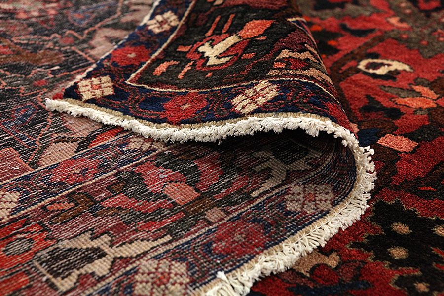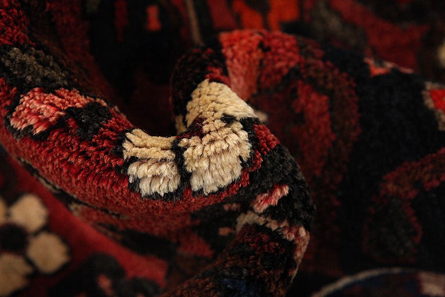 Abrash: Due to the different amount of grease in the wool and the added salt during the process of dyeing, the wool has got a varying colour absorbance. This is not very visible before weaving. During the weaving though, lines of the same colour are formed in the carpet. This is called Abrash (which in Farsi means little cloud) and it shows that the wool was not manufactured using chemical means and marks the naturalness and authenticity of the carpets. Examples