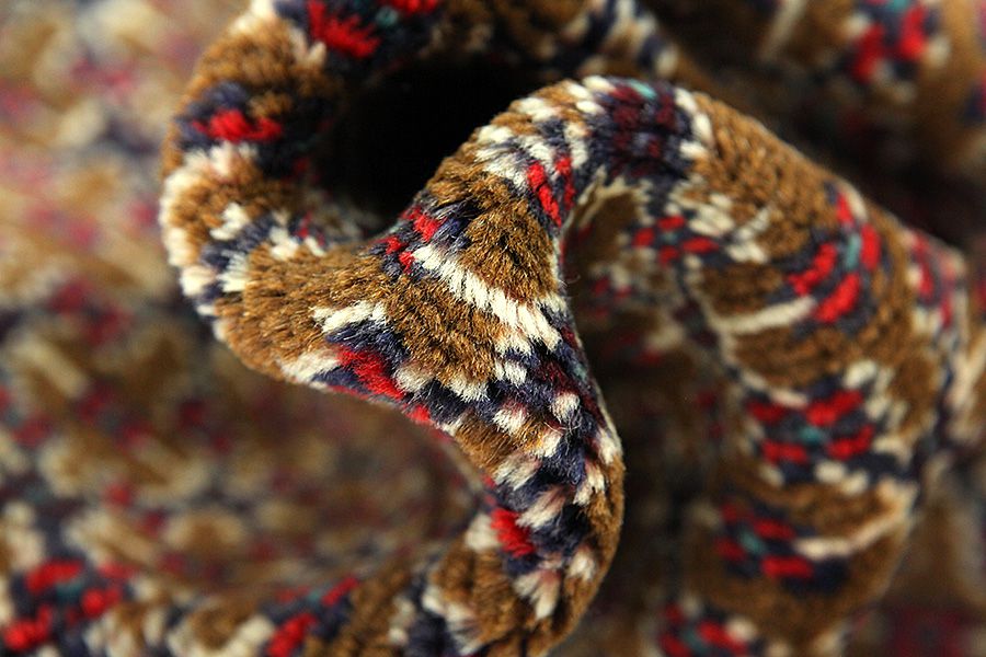 Abrash: Due to the different amount of grease in the wool and the added salt during the process of dyeing, the wool has got a varying colour absorbance. This is not very visible before weaving. During the weaving though, lines of the same colour are formed in the carpet. This is called Abrash (which in Farsi means little cloud) and it shows that the wool was not manufactured using chemical means and marks the naturalness and authenticity of the carpets. Examples