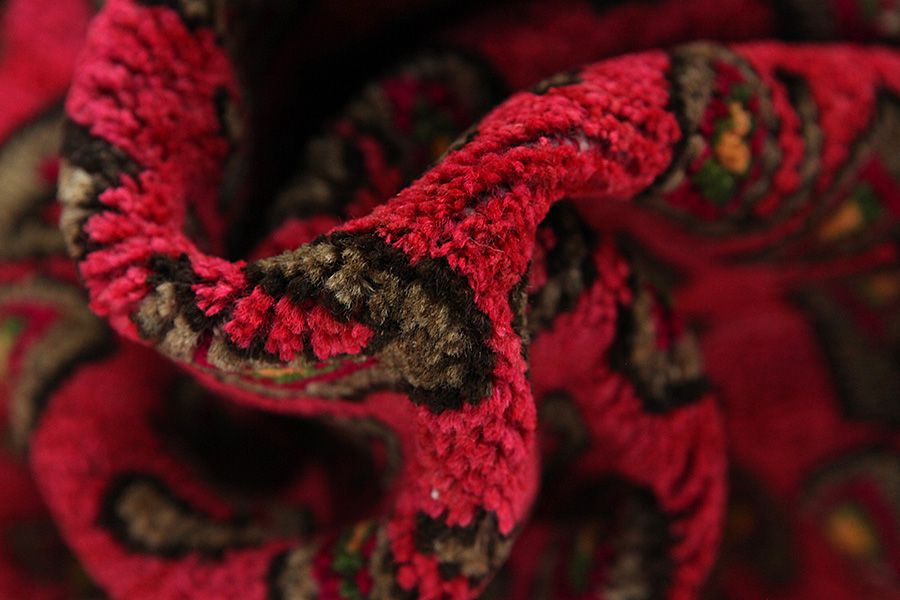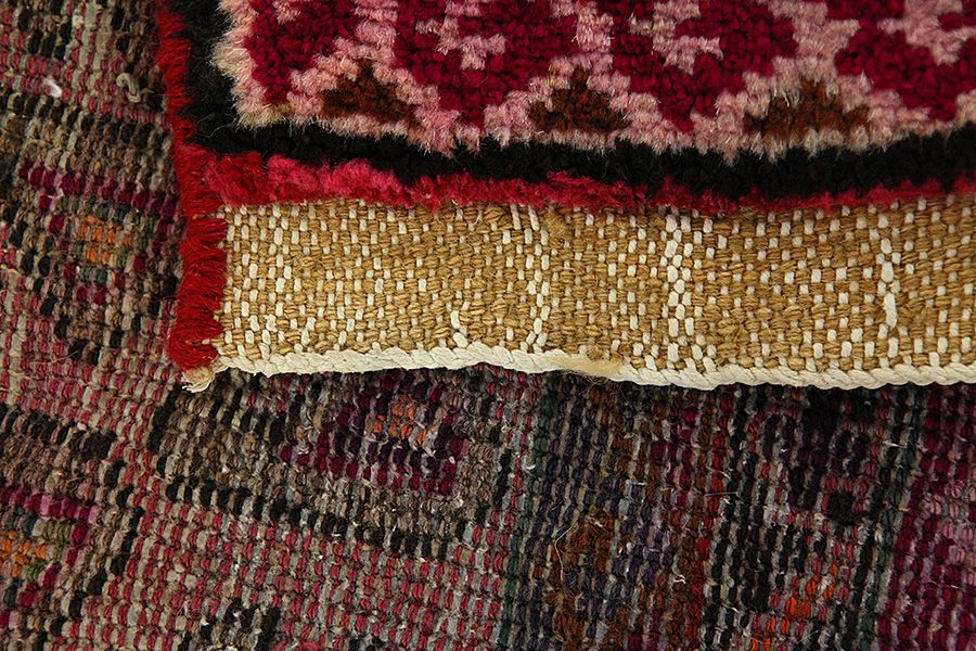 Abrash: Due to the different amount of grease in the wool and the added salt during the process of dyeing, the wool has got a varying colour absorbance. This is not very visible before weaving. During the weaving though, lines of the same colour are formed in the carpet. This is called Abrash (which in Farsi means little cloud) and it shows that the wool was not manufactured using chemical means and marks the naturalness and authenticity of the carpets. Examples