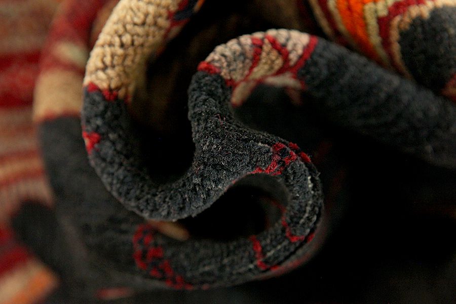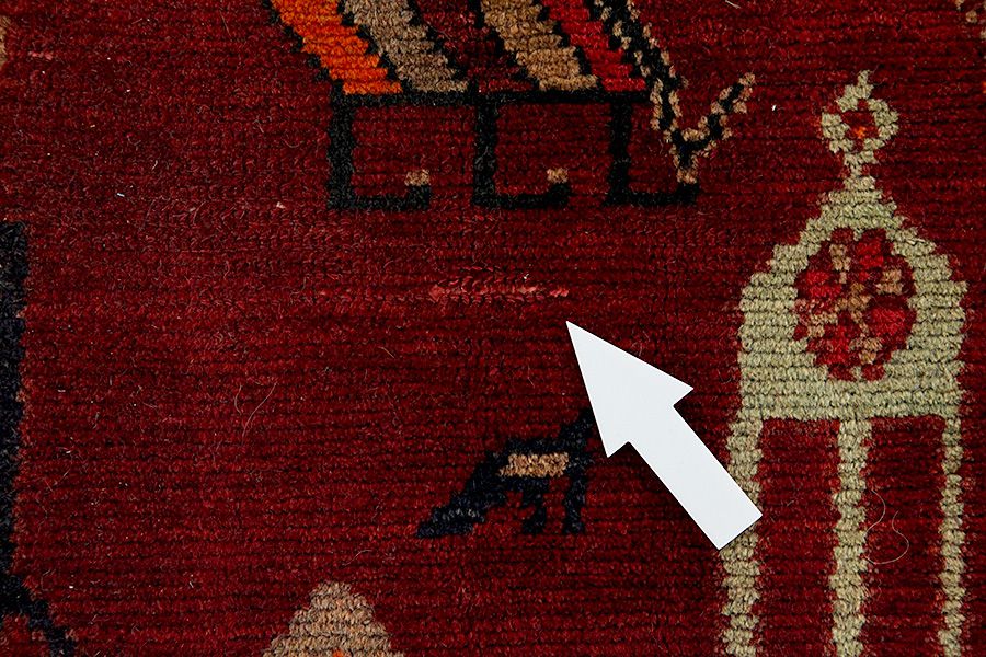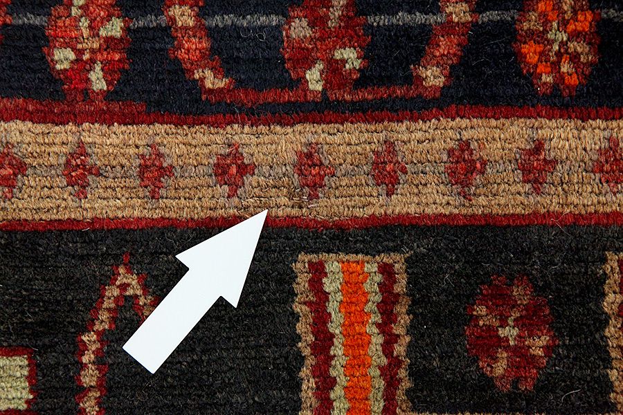 Abrash: Due to the different amount of grease in the wool and the added salt during the process of dyeing, the wool has got a varying colour absorbance. This is not very visible before weaving. During the weaving though, lines of the same colour are formed in the carpet. This is called Abrash (which in Farsi means little cloud) and it shows that the wool was not manufactured using chemical means and marks the naturalness and authenticity of the carpets. Examples