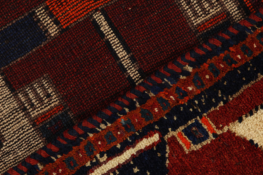 Qashqai Carpets : Qashqai carpets are woven by nomads who live in the mountainous areas of Southwest Persia, the provinces of Fars, Khuzestan, south of Isfahan and around the city Shiraz. Their carpets have a high knot density and a wide variety of designs, usually in deep red and blue colors. They weave carpets, Kilims and decorative textiles (ribbons, bags, etc.), which depict scenes from their lives with various representation of humans, animals, birds, trees and flowers. They also depict historical monuments, mostly from Persepolis.