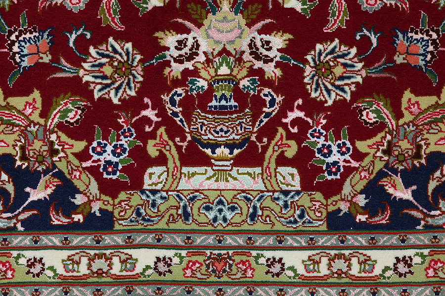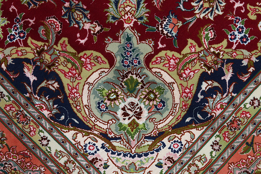 Tabriz Carpets : The city of Tabriz is the capital of Azerbaijan province in Northwestern Iran. Until the end of the caravans era it was the most important centre for trade and carpet weaving. Tabriz supplied the West with masterpieces that were made by renowned and very capable weavers. Their high quality of Tabriz carpets made them renowned in world markets. Many workshops where created where hand-woven carpets with very high density knots and high quality materials where woven. Silk and fine quality wool establish these carpets as very high class. No other city in Persia produced such large quantity or variety of carpets. With or without a medallion, their designs are full of imagination and individuality. Flowers, scenes, stanzas of poems often decorate them. Their predominant colors are beige, blue and red.