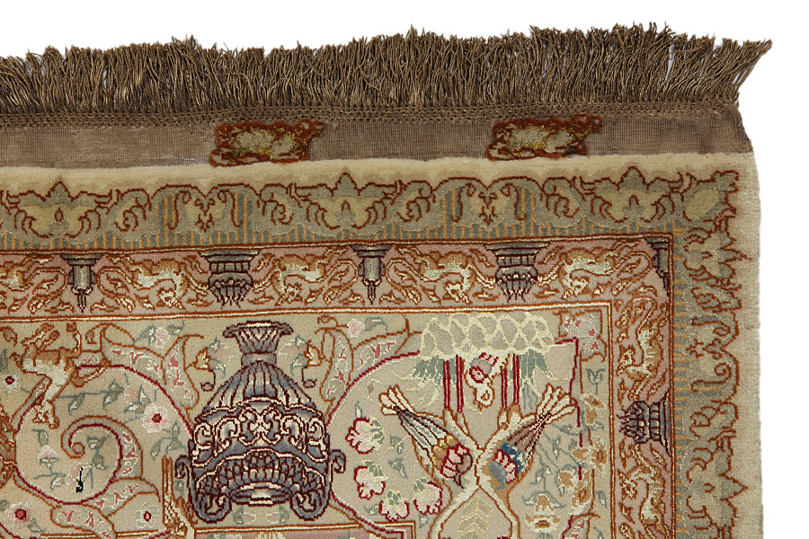 Tabriz Carpets : The city of Tabriz is the capital of Azerbaijan province in Northwestern Iran. Until the end of the caravans era it was the most important centre for trade and carpet weaving. Tabriz supplied the West with masterpieces that were made by renowned and very capable weavers. Their high quality of Tabriz carpets made them renowned in world markets. Many workshops where created where hand-woven carpets with very high density knots and high quality materials where woven. Silk and fine quality wool establish these carpets as very high class. No other city in Persia produced such large quantity or variety of carpets. With or without a medallion, their designs are full of imagination and individuality. Flowers, scenes, stanzas of poems often decorate them. Their predominant colors are beige, blue and red.