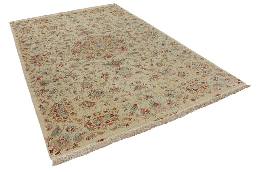 Tabriz Carpets : The city of Tabriz is the capital of Azerbaijan province in Northwestern Iran. Until the end of the caravans era it was the most important centre for trade and carpet weaving. Tabriz supplied the West with masterpieces that were made by renowned and very capable weavers. Their high quality of Tabriz carpets made them renowned in world markets. Many workshops where created where hand-woven carpets with very high density knots and high quality materials where woven. Silk and fine quality wool establish these carpets as very high class. No other city in Persia produced such large quantity or variety of carpets. With or without a medallion, their designs are full of imagination and individuality. Flowers, scenes, stanzas of poems often decorate them. Their predominant colors are beige, blue and red.