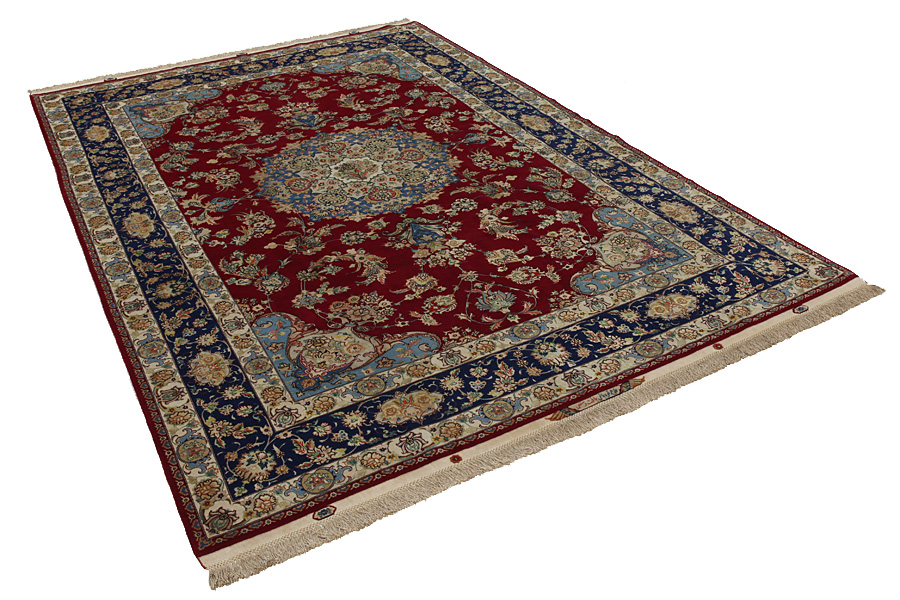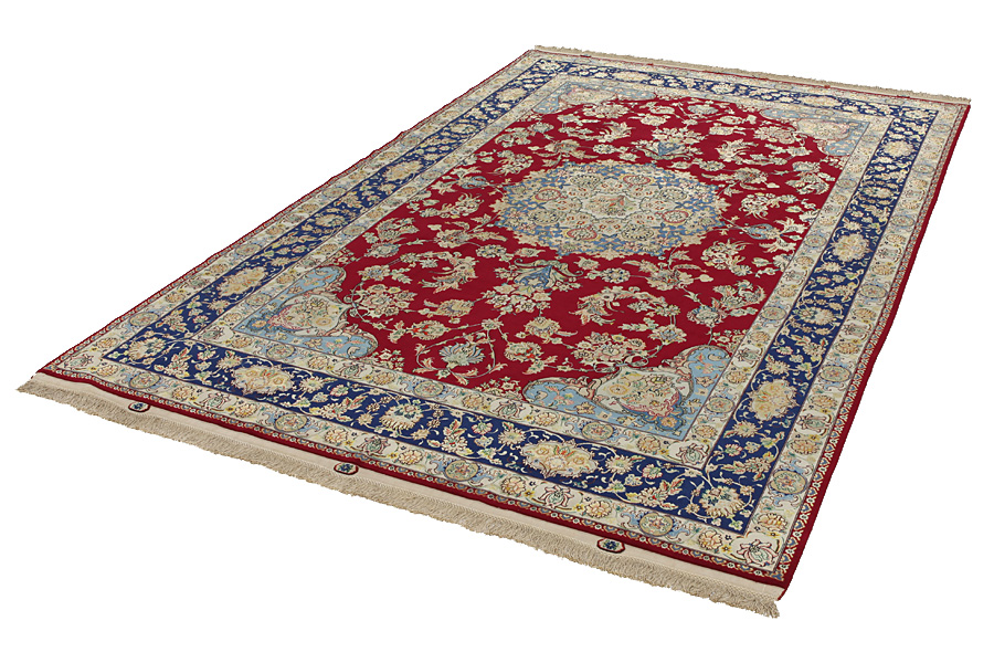 Tabriz Carpets : The city of Tabriz is the capital of Azerbaijan province in Northwestern Iran. Until the end of the caravans era it was the most important centre for trade and carpet weaving. Tabriz supplied the West with masterpieces that were made by renowned and very capable weavers. Their high quality of Tabriz carpets made them renowned in world markets. Many workshops where created where hand-woven carpets with very high density knots and high quality materials where woven. Silk and fine quality wool establish these carpets as very high class. No other city in Persia produced such large quantity or variety of carpets. With or without a medallion, their designs are full of imagination and individuality. Flowers, scenes, stanzas of poems often decorate them. Their predominant colors are beige, blue and red.