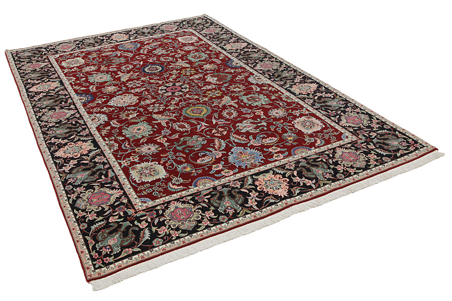 Tabriz Carpets : The city of Tabriz is the capital of Azerbaijan province in Northwestern Iran. Until the end of the caravans era it was the most important centre for trade and carpet weaving. Tabriz supplied the West with masterpieces that were made by renowned and very capable weavers. Their high quality of Tabriz carpets made them renowned in world markets. Many workshops where created where hand-woven carpets with very high density knots and high quality materials where woven. Silk and fine quality wool establish these carpets as very high class. No other city in Persia produced such large quantity or variety of carpets. With or without a medallion, their designs are full of imagination and individuality. Flowers, scenes, stanzas of poems often decorate them. Their predominant colors are beige, blue and red.