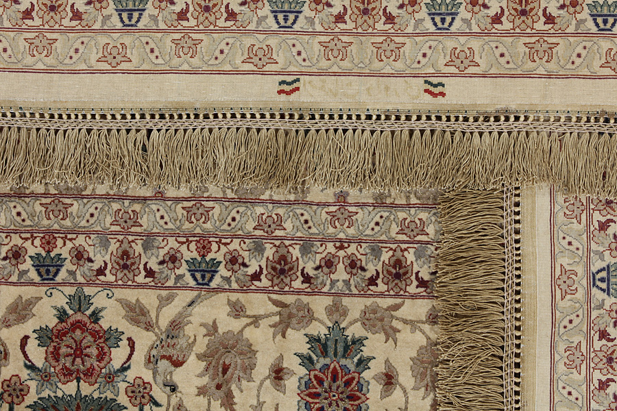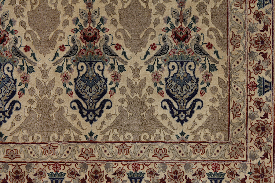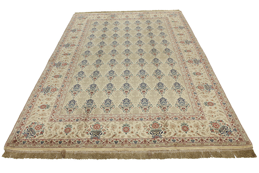 Isfahan Carpets : In the centre of Iran among the Zagros Mountains and the desert, lies the city of Isfahan. Nowadays it is an important industrial city with a population of 1.2 million. The town is an architectural masterpiece. The old carpets of Isfahan in contrast with the newer ones didn't have got a central medallion. The entire surface of the carpet was filled with elaborate spiral flowers and flower palmettes. The newer Isfahan rugs and carpets cannot be compared with those wonderful old specimens which were manufactured exclusively for nobles. But continuing the tradition, today's carpets of Isfahan also have a very fine weave and are clipped very short to reveal their design more clearly. In the weaving they also use silk to highlight certain areas of the design, especially in flowers. The warp is made of silk or cotton.