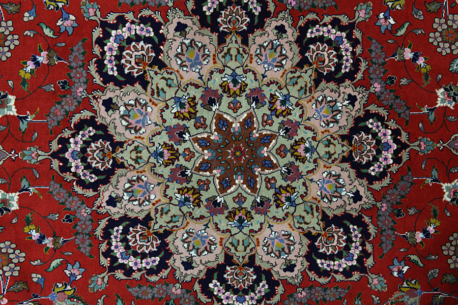 Tabriz Carpets : The city of Tabriz is the capital of Azerbaijan province in Northwestern Iran. Until the end of the caravans era it was the most important centre for trade and carpet weaving. Tabriz supplied the West with masterpieces that were made by renowned and very capable weavers. Their high quality of Tabriz carpets made them renowned in world markets. Many workshops where created where hand-woven carpets with very high density knots and high quality materials where woven. Silk and fine quality wool establish these carpets as very high class. No other city in Persia produced such large quantity or variety of carpets. With or without a medallion, their designs are full of imagination and individuality. Flowers, scenes, stanzas of poems often decorate them. Their predominant colors are beige, blue and red.