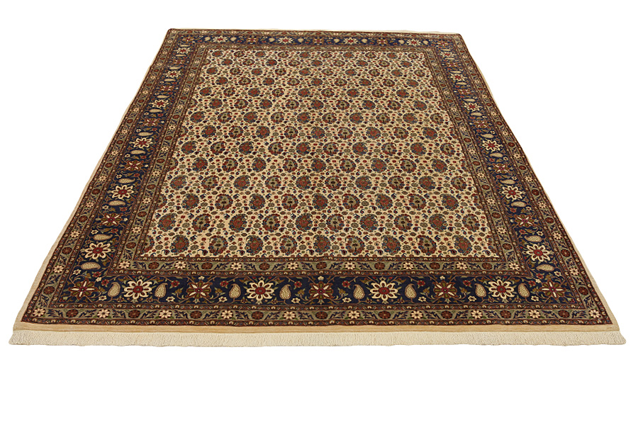 Tabriz Carpets : The city of Tabriz is the capital of Azerbaijan province in Northwestern Iran. Until the end of the caravans era it was the most important centre for trade and carpet weaving. Tabriz supplied the West with masterpieces that were made by renowned and very capable weavers. Their high quality of Tabriz carpets made them renowned in world markets. Many workshops where created where hand-woven carpets with very high density knots and high quality materials where woven. Silk and fine quality wool establish these carpets as very high class. No other city in Persia produced such large quantity or variety of carpets. With or without a medallion, their designs are full of imagination and individuality. Flowers, scenes, stanzas of poems often decorate them. Their predominant colors are beige, blue and red.
