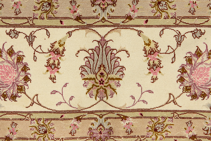 Tabriz Carpets : The city of Tabriz is the capital of Azerbaijan province in Northwestern Iran. Until the end of the caravans era it was the most important centre for trade and carpet weaving. Tabriz supplied the West with masterpieces that were made by renowned and very capable weavers. Their high quality of Tabriz carpets made them renowned in world markets. Many workshops where created where hand-woven carpets with very high density knots and high quality materials where woven. Silk and fine quality wool establish these carpets as very high class. No other city in Persia produced such large quantity or variety of carpets. With or without a medallion, their designs are full of imagination and individuality. Flowers, scenes, stanzas of poems often decorate them. Their predominant colors are beige, blue and red.