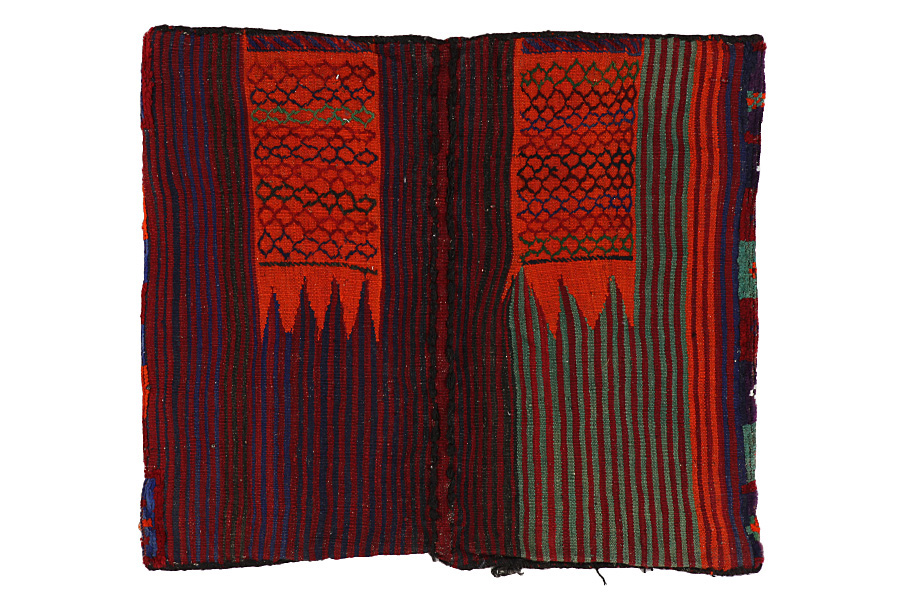 Saddle Bag Carpets : ​Horse saddle bags are made by Nomads for their own use. One can distinguish between the kilim-horse saddle bags and the knotted horse saddle bags. The front side of a knotted horse saddle bag is either knotted like a common carpet with knots or different mixed techniques are used. The side parts are often woven whereas in the middle part different weaving techniques such as kelim or Soumak are applied. The colors horse bags are dyed with are all natural and made by the Nomads themselves. Bags like these once carried everyday necessities for travelers on donkeys or horses. A delightful piece of art that provides a unique oriental atmosphere to your home. Horse saddle bags can be used as a seat cushion, as a floor cushion eg in front of your fireplace or as a wall decoration. Smaller horse saddle bags can be used as a newspaper holder to store newspapers or magazines when slung over a chair or sofa.