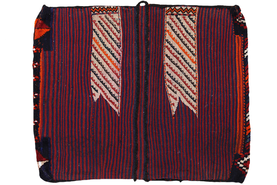 Saddle Bag Carpets : ​Horse saddle bags are made by Nomads for their own use. One can distinguish between the kilim-horse saddle bags and the knotted horse saddle bags. The front side of a knotted horse saddle bag is either knotted like a common carpet with knots or different mixed techniques are used. The side parts are often woven whereas in the middle part different weaving techniques such as kelim or Soumak are applied. The colors horse bags are dyed with are all natural and made by the Nomads themselves. Bags like these once carried everyday necessities for travelers on donkeys or horses. A delightful piece of art that provides a unique oriental atmosphere to your home. Horse saddle bags can be used as a seat cushion, as a floor cushion eg in front of your fireplace or as a wall decoration. Smaller horse saddle bags can be used as a newspaper holder to store newspapers or magazines when slung over a chair or sofa.