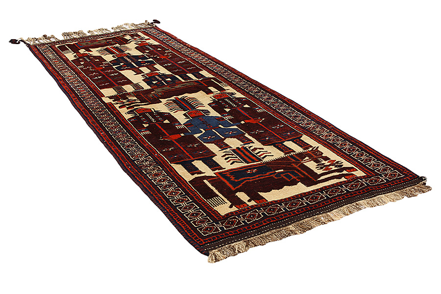Qashqai Carpets : Qashqai carpets are woven by nomads who live in the mountainous areas of Southwest Persia, the provinces of Fars, Khuzestan, south of Isfahan and around the city Shiraz. Their carpets have a high knot density and a wide variety of designs, usually in deep red and blue colors. They weave carpets, Kilims and decorative textiles (ribbons, bags, etc.), which depict scenes from their lives with various representation of humans, animals, birds, trees and flowers. They also depict historical monuments, mostly from Persepolis.