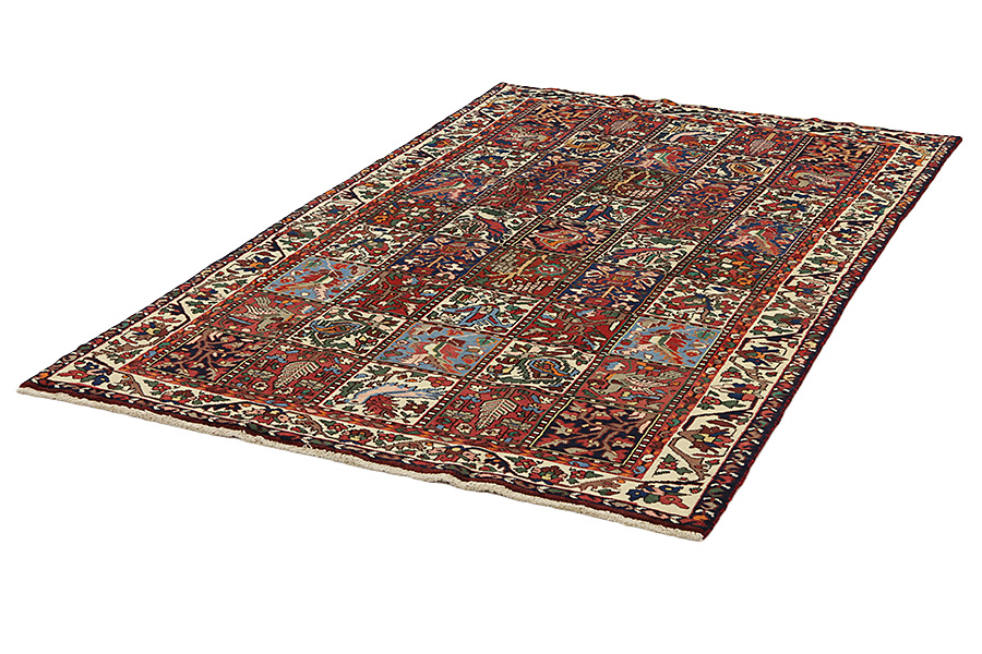 Bakhtiari Carpets : In the mountains Zagros, west of the city of Isfahan, around the town of Shahr-e-Kurd, live the nomads Bakhtiar. Their carpets are known for the design with various repeating squares in which flowers and animals are depicted. For this reason the design is called "garden"(Khesti). Their carpets are very durable with a dense weave and very good quality Persian wool coming from sheep grazing at a high altitude. The best Bakhtiar rugs and carpets with highest knot density are often called Bibibaff. Also in many designs we see influences from Isfahan carpets. (Boldaji - Feridan - Saman).