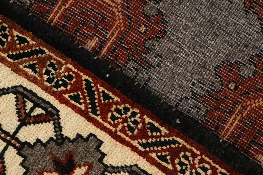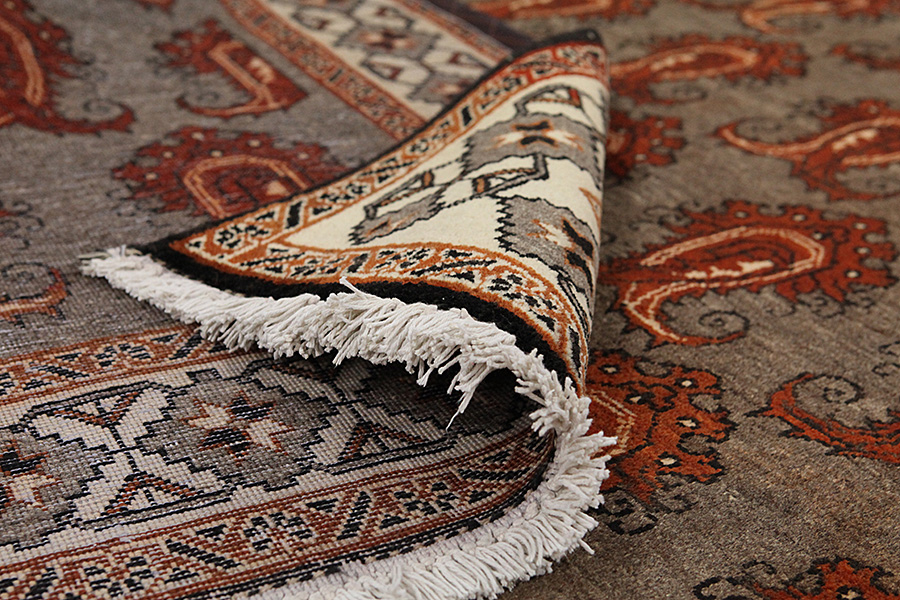 Abrash: Due to the different amount of grease in the wool and the added salt during the process of dyeing, the wool has got a varying colour absorbance. This is not very visible before weaving. During the weaving though, lines of the same colour are formed in the carpet. This is called Abrash (which in Farsi means little cloud) and it shows that the wool was not manufactured using chemical means and marks the naturalness and authenticity of the carpets. Examples