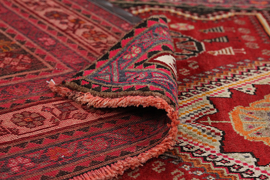 Qashqai Carpets : Qashqai carpets are woven by nomads who live in the mountainous areas of Southwest Persia, the provinces of Fars, Khuzestan, south of Isfahan and around the city Shiraz. Their carpets have a high knot density and a wide variety of designs, usually in deep red and blue colors. They weave carpets, Kilims and decorative textiles (ribbons, bags, etc.), which depict scenes from their lives with various representation of humans, animals, birds, trees and flowers. They also depict historical monuments, mostly from Persepolis.