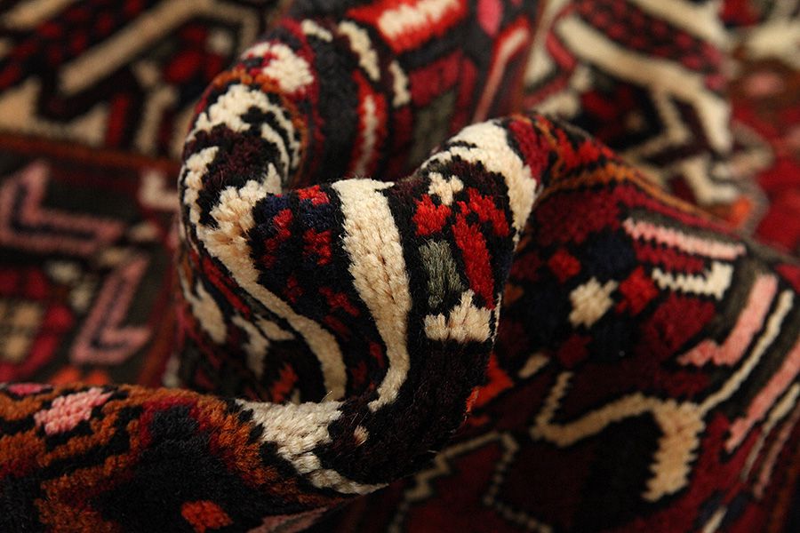 Abrash: Due to the different amount of grease in the wool and the added salt during the process of dyeing, the wool has got a varying colour absorbance. This is not very visible before weaving. During the weaving though, lines of the same colour are formed in the carpet. This is called Abrash (which in Farsi means little cloud) and it shows that the wool was not manufactured using chemical means and marks the naturalness and authenticity of the carpets. Examples
